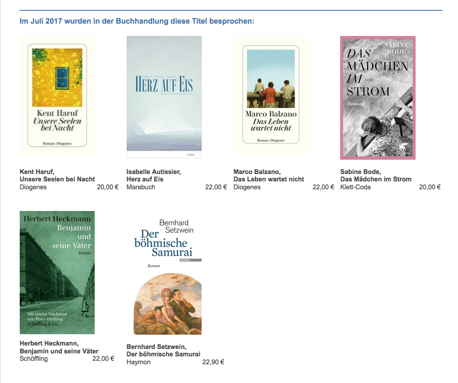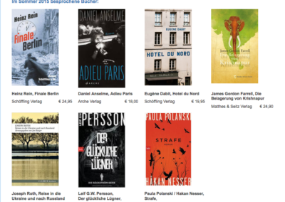 Besprochene Titel von 2014 – 2019 Neue Belletristik 09.05.2019 Neue Belletristik 14.03.2019 Neue Belletristik 23.01.2019 Neue Belletristik 08.12.2018 Neue Belletristik 05.12.2018 Neue Belletristik 12.09.2018 Neue Belletristik 26.07.2018 Neue Belletristik 16.05.2018 Neue Belletristik 21.03.2018 Neue Belletristik 25.01.2018 Neue Belletristik 26.10.2017 Neue Belletristik 07.2017 Neue Belletristik 10.2016 Neue Belletristik 06.2016 Neue Belletristik 04.2016 Neue Belletristik 02.2016 Neue Belletristik 12.2015 Neue Belletristik 09.2015 Neue Belletristik 08.2015 Neue Belletristik 2014